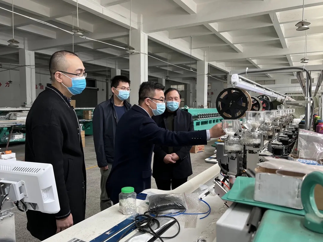 永春县五里街镇纪检监察干部到某电子加工企业了解企业生产及惠企政策落实情况(陈跃虹 摄)
