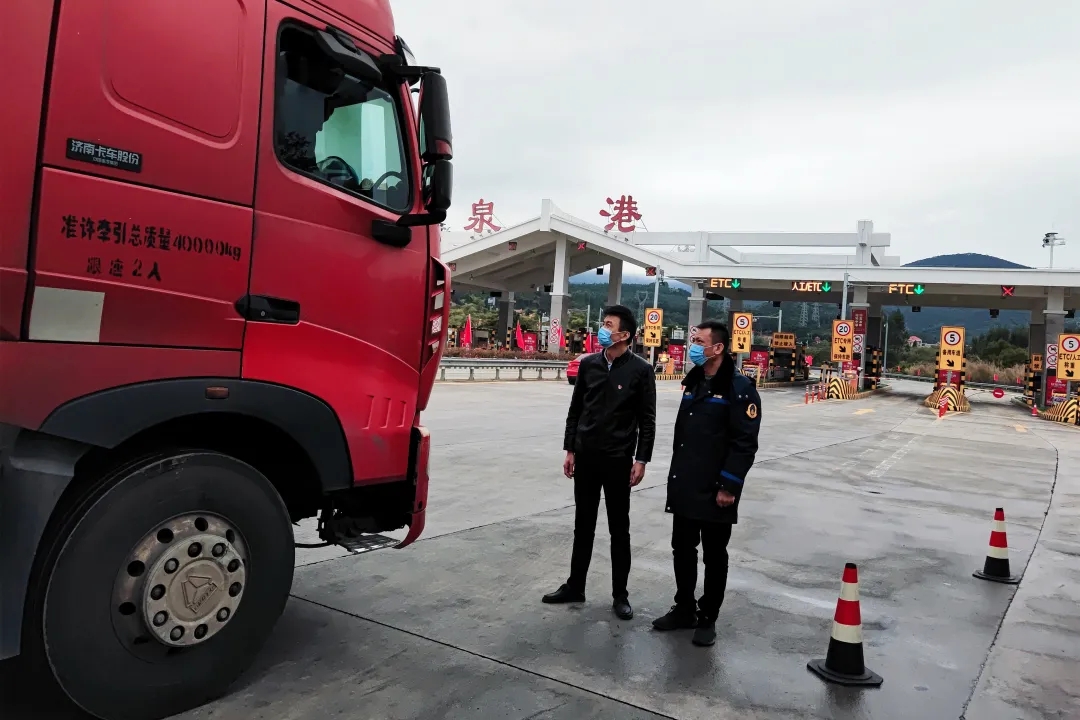 泉港区纪委监委驻区政协机关纪检监察组干部到辖区各交通卡口、春运安全监督服务岗等,监督检查疫情防控工作开展情况。(庄杰栋 摄)