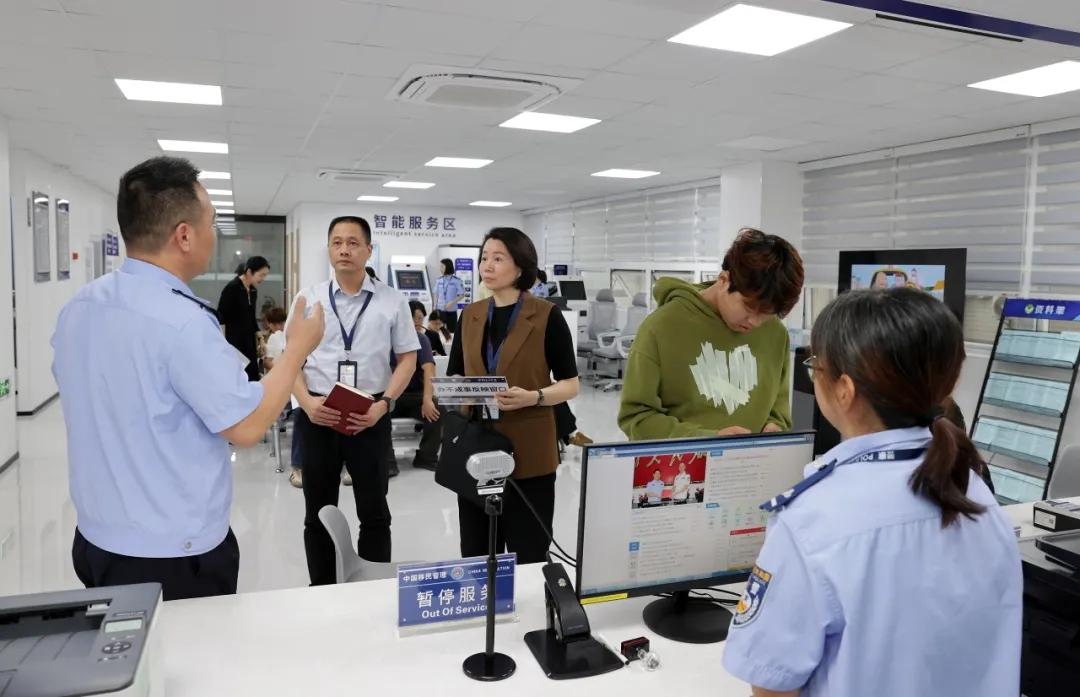 图为泉州市纪委监委驻市公安局纪检监察组前往洛江区政务服务中心,监督检查洛江公安分局治安、出入境综合窗口,了解相关行政审批和窗口服务情况。(张九强 摄)