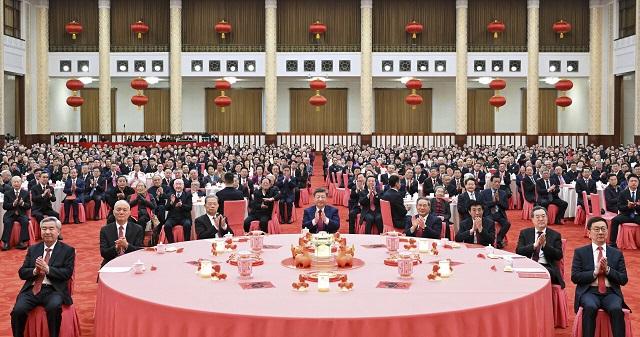 人民大会堂宴会厅灯光璀璨、喜气洋洋,各界人士2000多人欢聚一堂、共迎佳节,现场洋溢着欢乐祥和的节日气氛。